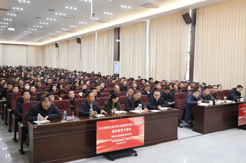 為深入貫徹全面從嚴治黨戰(zhàn)略方針,持續(xù)深化黨風(fēng)廉政建設(shè)和反腐敗工作,壓緊壓實管黨治企政治責(zé)任,3月4日,酉州實業(yè)集團召開2026年黨風(fēng)廉政建設(shè)工作專題會。會議旨在筑牢全員廉潔思想防線,為集團新一年的發(fā)展劃定“路線圖”、明確“任務(wù)書”。集團黨委副書記、總經(jīng)理冉景和主持會議,縣紀委監(jiān)委派駐縣財政局紀檢監(jiān)察組組長謝其華應(yīng)邀蒞臨指導(dǎo)。集團全體領(lǐng)導(dǎo)班子、中層干部、全體黨員,子公司副職以上干部,項目建設(shè)、財務(wù)融資、物資采購、兩違管控、鄉(xiāng)村振興工作隊員等關(guān)鍵崗位,桃花源地產(chǎn)公司、新城公司全體干部職工參會。會議分為兩個階段進行,采取“警示+傳達+部署+表態(tài)+指導(dǎo)”的五維聯(lián)動模式,環(huán)環(huán)相扣、步步深入,通過全方位的思想洗禮和責(zé)任傳導(dǎo),推動集團2026年黨風(fēng)廉政建設(shè)工作走深走實。